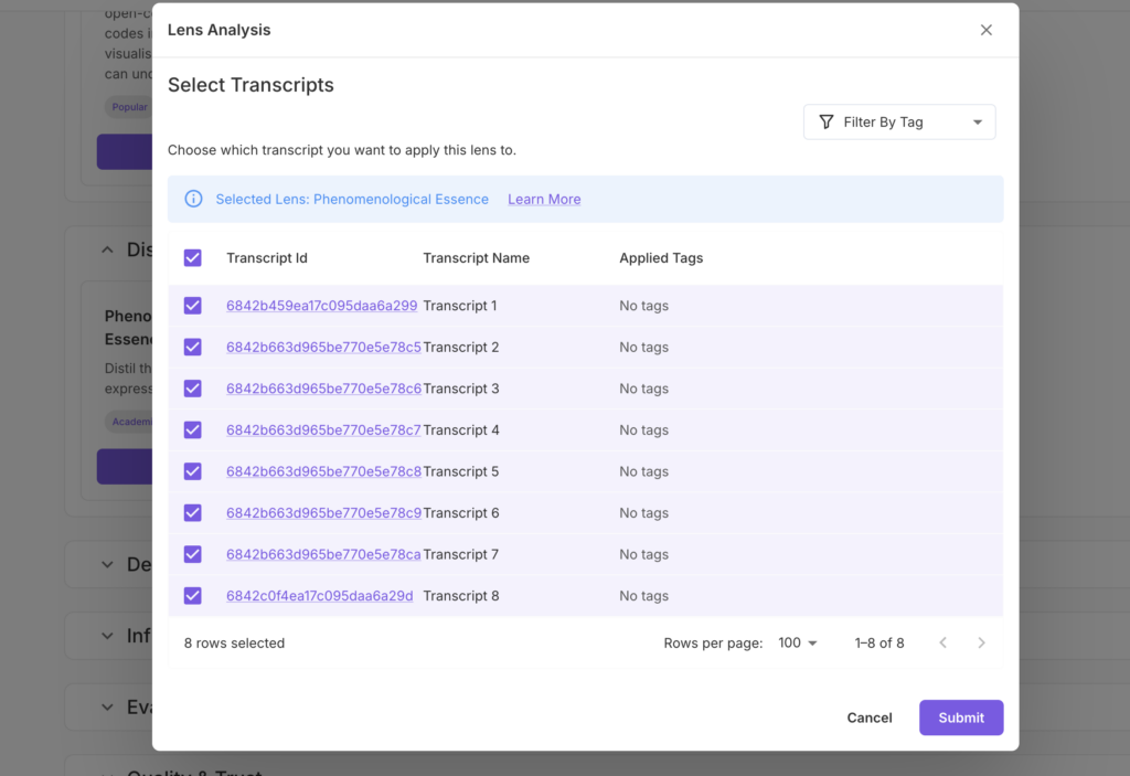 Whether you’re refining a brand message, exploring product adoption barriers, or understanding participants' identity, the Phenomenological Essence Lens helps you grasp not just what people did but also how they experienced it and why it mattered.