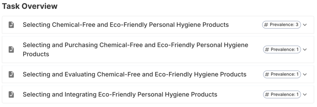 Tasks such as selecting and integrating eco-friendly personal hygiene products are broken down into decision processes, revealing friction points and key enablers.