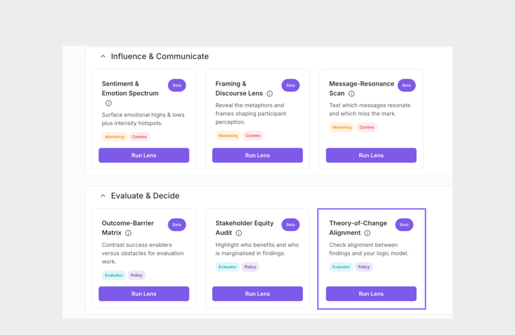 Here, we have selected the Theory-of-Change Alignment Lens.