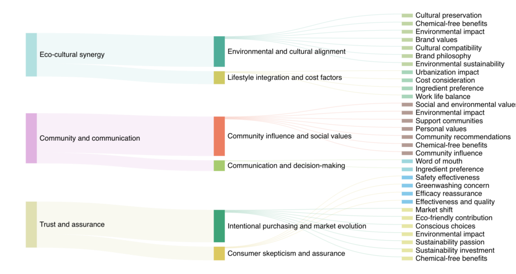 Visual Narrative Flows Explore Sankey-style visualizations that map how micro-codes flow into subthemes and roll up into major themes. These visuals allow you to trace meaning across layers, from user sentiment to value-driven decision-making.