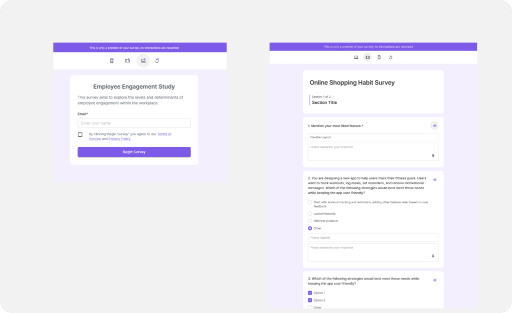Toggle the “Ask for participants explicit consent” option to include a consent prompt at the start of your survey. Once enabled, participants must confirm their consent before beginning the survey.
