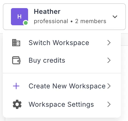 - Click your workspace name in the top-left corner