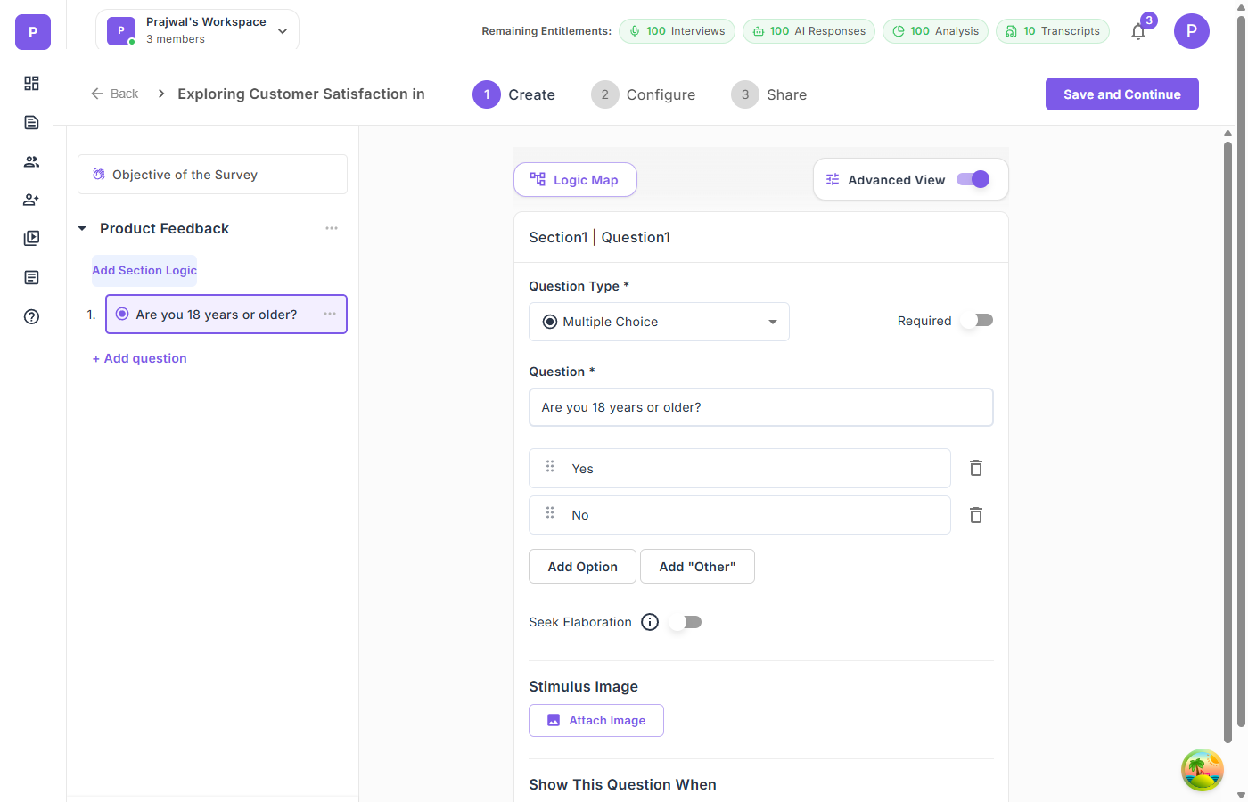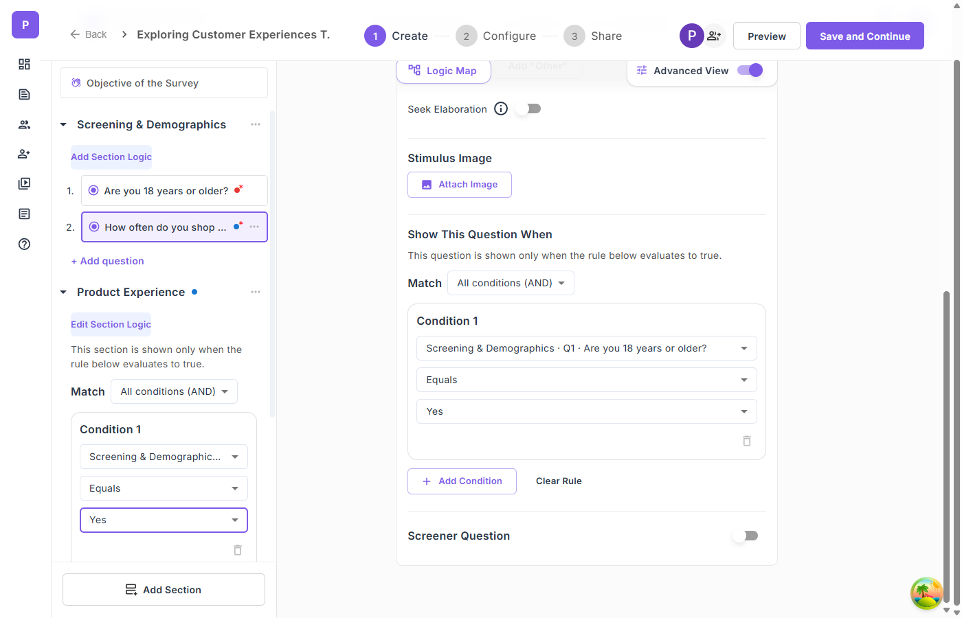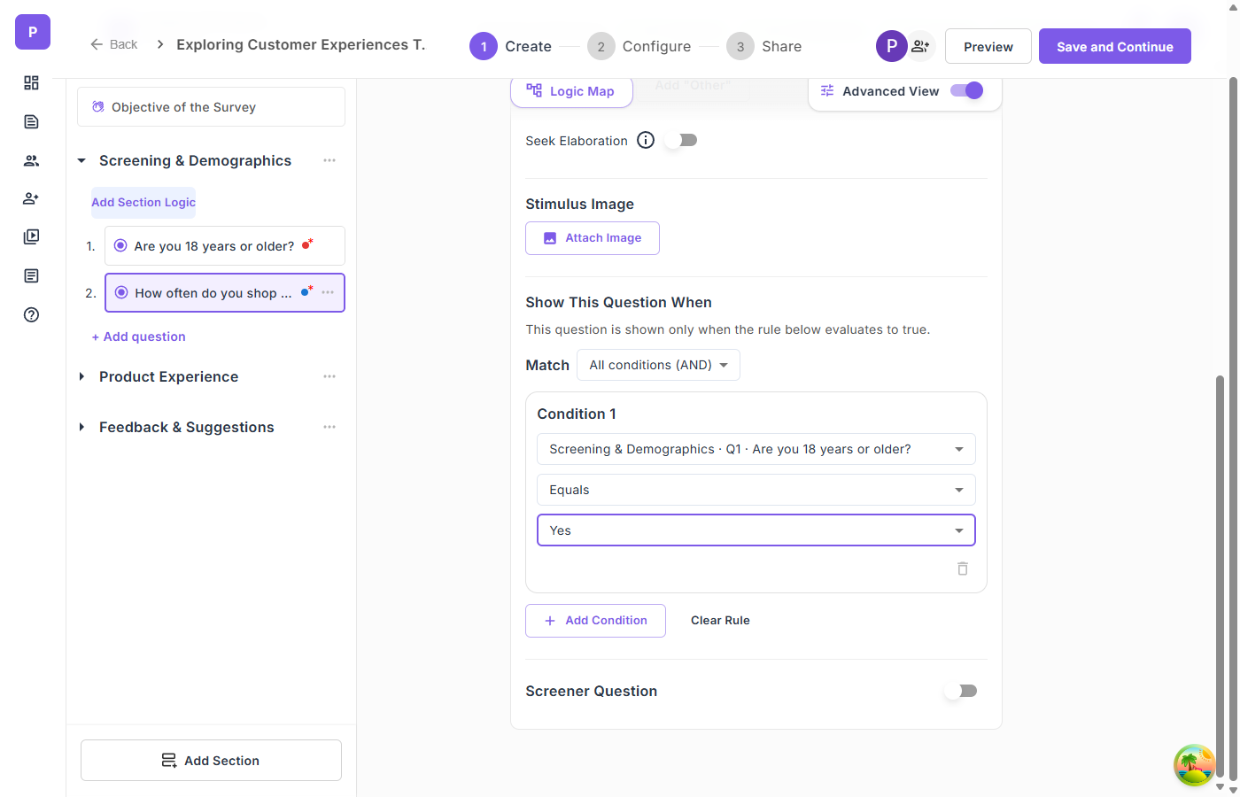 Branching and conditional logic allow you to create dynamic survey paths that adapt based on participant answers. Instead of showing every question to every participant, you can show or hide specific questions and entire sections depending on how someone responds to earlier questions.
