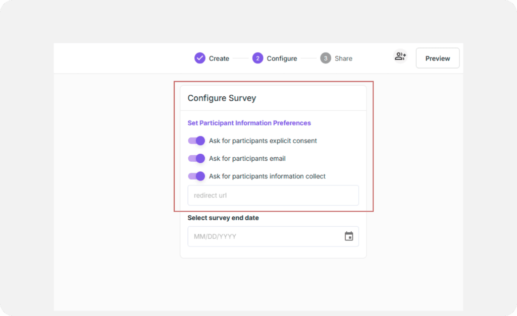 Enable the “Ask for participants information collect” toggle to gather more participant information, such as age, occupation, or preferences.